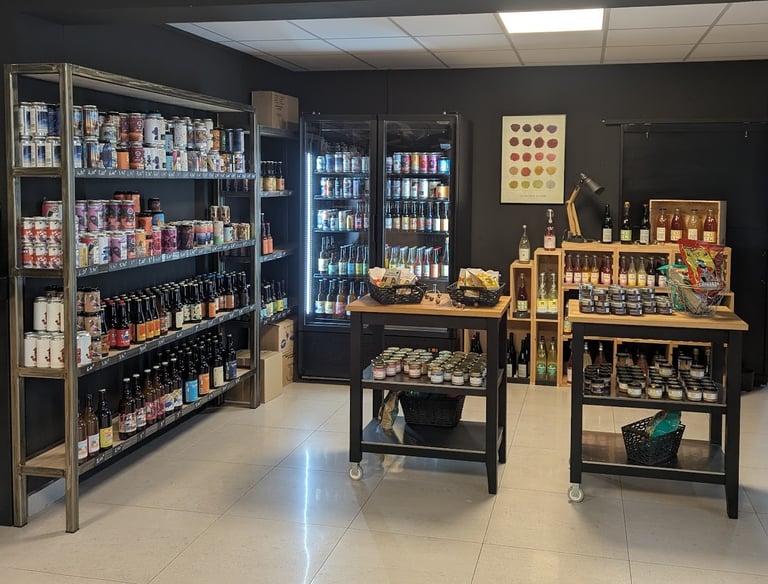 des bières artisanales, des spiritueux, des softs et de l'épicerie fine.